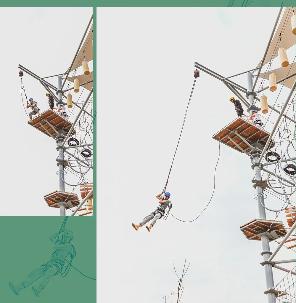 主塔外圍則設計有高空滑索、低空蹦極、螺旋滑梯、恐龍主題攀巖等特色項目。
